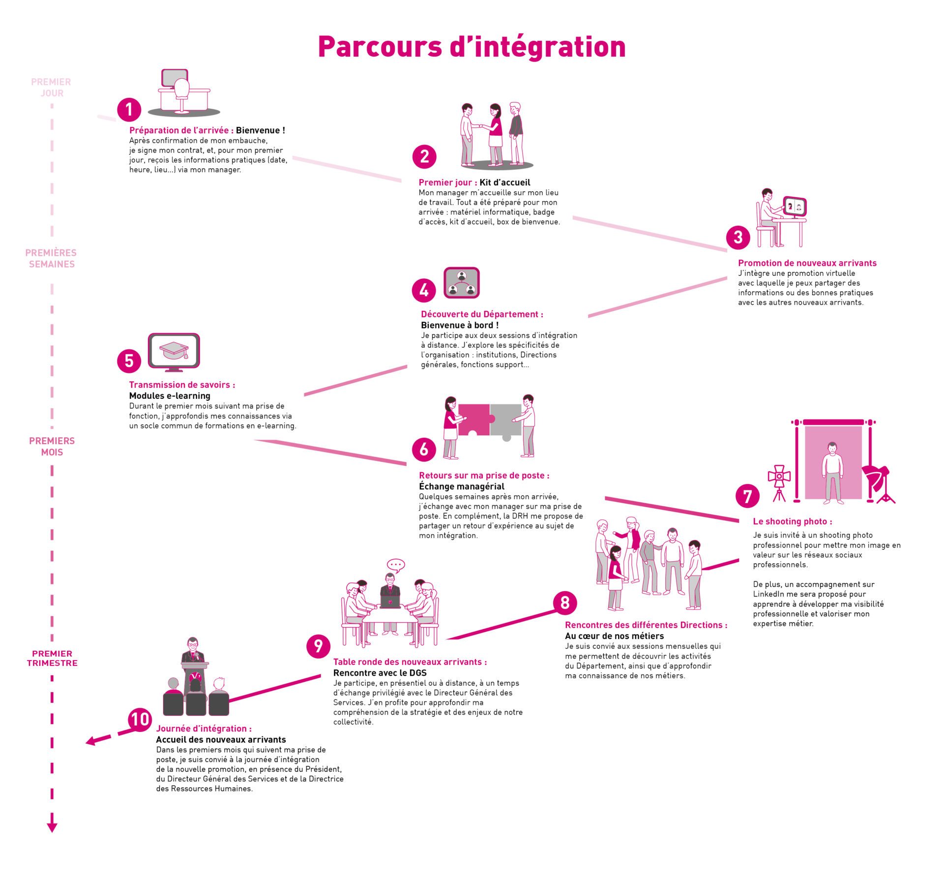 Au programme, plusieurs temps forts prévus pour permettre au nouveau collaborateur de découvrir et s’approprier son nouvel environnement professionnel.